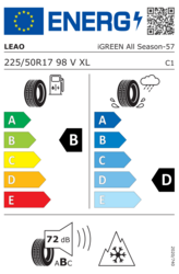 Det højtydende vinterdæk, Leao I-Green All Season 225/50 R17 98V XL M+S, er udstyret med en speciel slidbane, der giver optimalt greb på snedækkede eller iskolde veje. Det er sammensat af en speciel gummiblanding og er især interessant for sin kørekomfort og egenskaber på regnvådt eller tørt underlag. Dette helårsdæk lever op til dine forventninger.